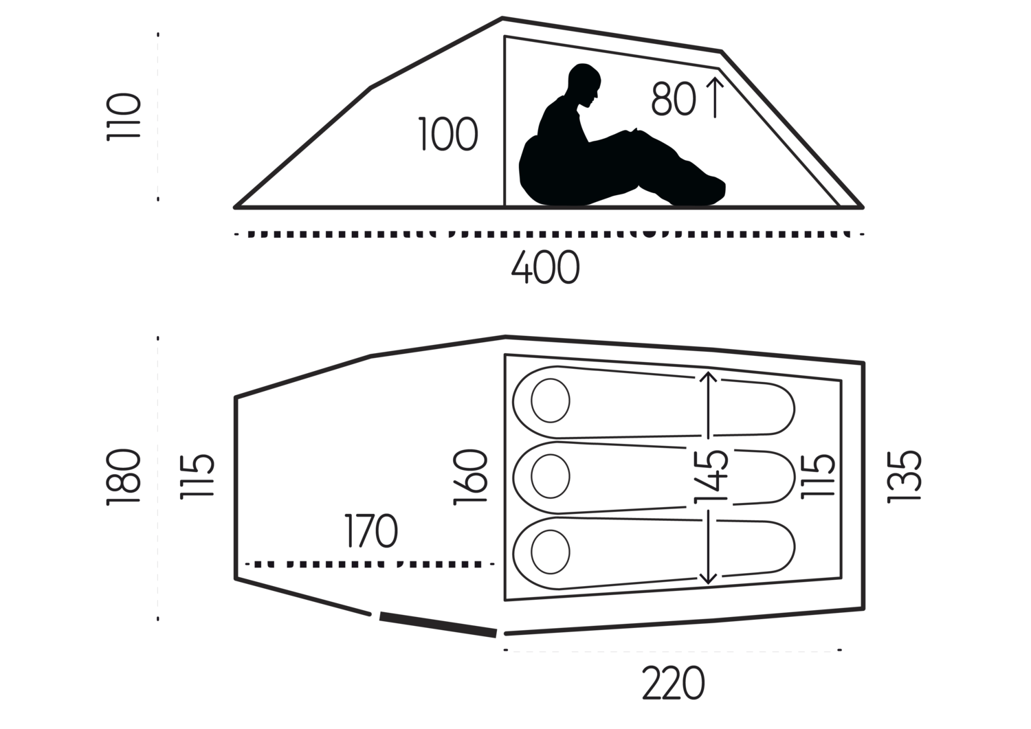 • Flysheet can be rolled up at both ends for superior ventilation.