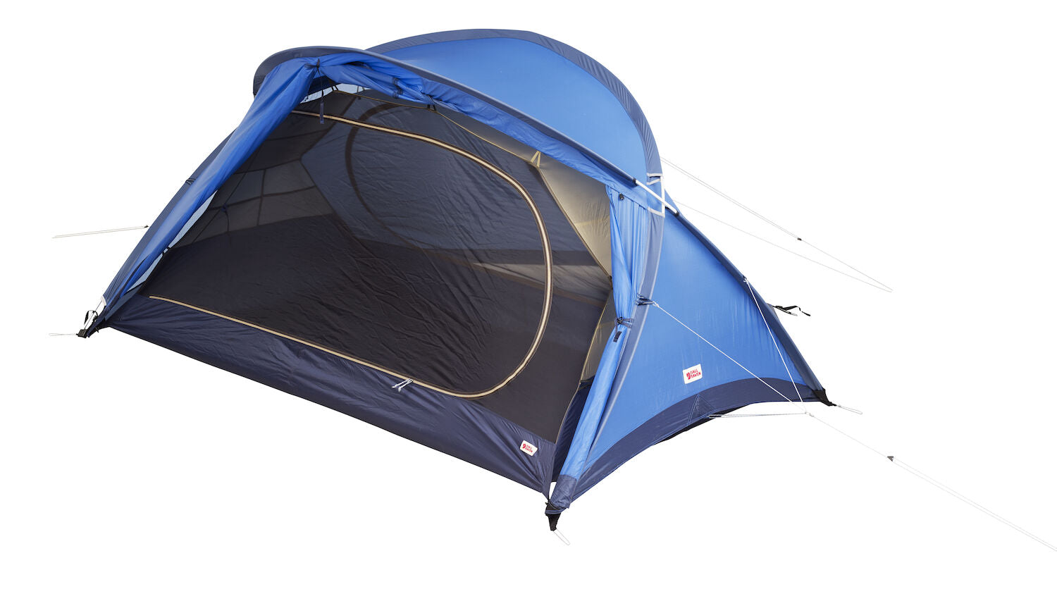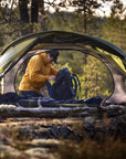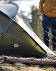 Self-supporting three-season tent with excellent ventilation, optimised for use during the warmer months of the year. The vestibules can be entirely rolled up on both sides of the tent so you can enjoy the view from the inner tent while keeping insects at bay. The flysheet is raised on the short ends and this together with the highly positioned vents and inner tent entirely in mesh fabric makes the tent incredibly well ventilated and perfect for tropical adventures. In unstable but warm weather the doors can be fastened in half-open position, leaving the inner tent protected from the rain. The inner tent and the flysheet are connected and supported by two tent poles that cross each other twice. This makes the inner tent self supporting, while the vestibules are supported using guylines and tent pegs. Six guylines in Dyneema anchor the tent to the ground and give it good stability. Two openings and two vestibules make it easy to organise your side of the tent, and give you the possibility of using the entrance on the lee side during windy weather. Generous height provides comfortable tent life. Inside the inner tent is a clothesline and six storage pockets for bottles, flashlights, clothes etc. Attachment points for Gear Loft (an accessory) in the inner tent. The flysheet is made from Fjällräven’s new high-performance TripleRip polyamide and an innovative construction that combines two different fabric weights – 20 denier in the top part and 40 denier at the bottom where abrasion is most intensive – giving excellent strength despite the tent’s low weight. Just like all of Fjällräven’s tents, Abisko View 2 is made entirely without PVC plastic and toxic flame retardants, and its impregnation is produced without PFAS.